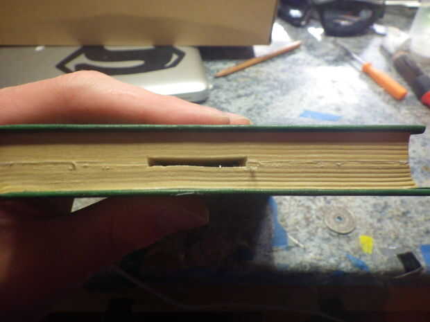 El secreto seguro era casi lo mismo. el único diferente es que dejó uno de los lados sin pegar para abrir y cerrar la caja fuerte. También no tenía una ranura de moneda en este libro.