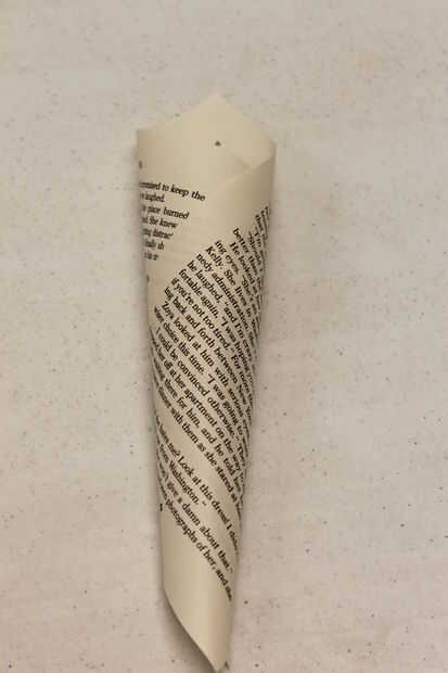 Las páginas se encrespan en pequeños conos. Cinta hacia abajo el borde exterior para mantener la forma de cono. Vas a tener que hacer por lo menos 90 o más dependiendo del tamaño de las páginas.