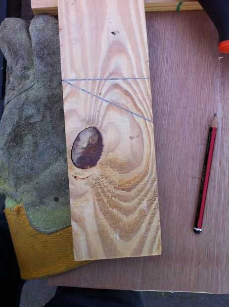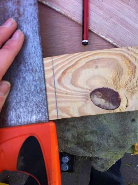 Después de cortar el primer lugar de la sección inclinada la sección en la parte superior del tablón para los ángulos luego dibujar una línea a lo largo de la parte posterior de la primera sección (esto le ahorra de hacer otro corte angular) a continuación, utilice la sierra para cortar a lo largo de la línea