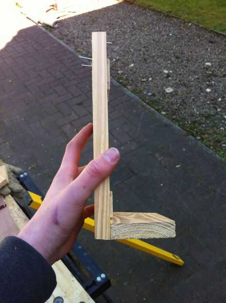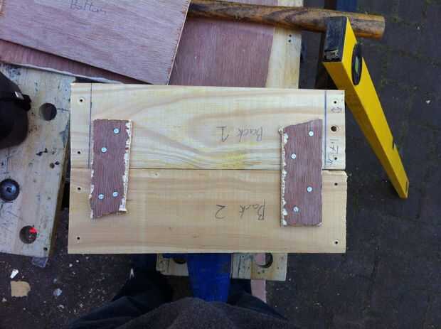 Primer comienzo por 4 agujeros a cada lado de la pared posterior entonces puso clavos en ellos para que sean solo leerlo por el otro lado y luego alineen las secciones de dos lados y martillo los clavos a través de