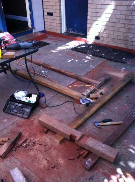 Después finalmente de un apartamento y una casa, descubrí que tenía espacio! Los inquilinos anteriores dejaron una mesa de altura de 2 1/2 pies en el garaje, pero era apenas ideal para hacer cualquier tipo de trabajo. Así nació la idea de un banco de