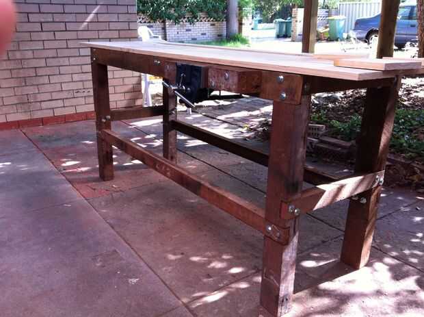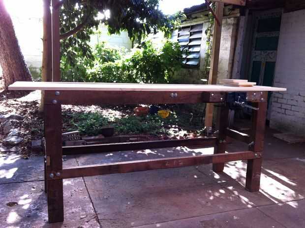 Después finalmente de un apartamento y una casa, descubrí que tenía espacio! Los inquilinos anteriores dejaron una mesa de altura de 2 1/2 pies en el garaje, pero era apenas ideal para hacer cualquier tipo de trabajo. Así nació la idea de un banco de