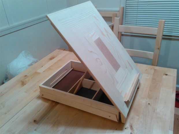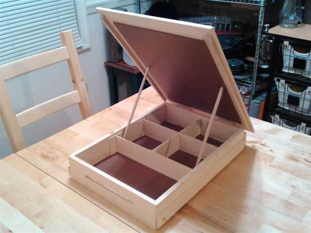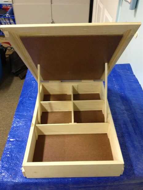 Así que mi absolutamente hermosa, no miedo ni novia-zilla-ish en todos, pronto a ser novia, amorosamente la tarea para crear un "caja de la tarjeta" para nuestra boda de tema del arte de caballete. Sin embargo, mi novia le encanta pintar, y quería hacer algo un poco más versátil que puede ser útil después de la boda también. Diseñé este caballete para ser un caballete de mesa funcional viajes, así como una caja de caballete/tarjeta de la exhibición permanente.
