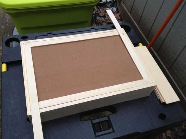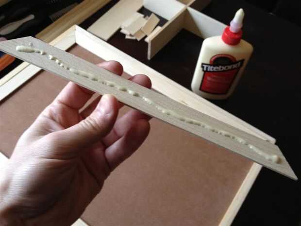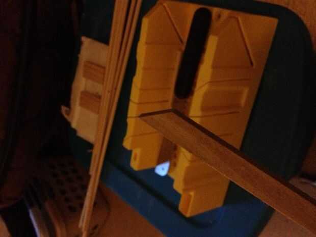 Para añadir fuerza a la caja y porque me gusta el look, decidí enmarcan la parte inferior de la caja con restos desechos finos. Cortar cada pieza con un ángulo de 45 grados y tamaño para ajustarse a cada lado de un pegado ellos abajo.