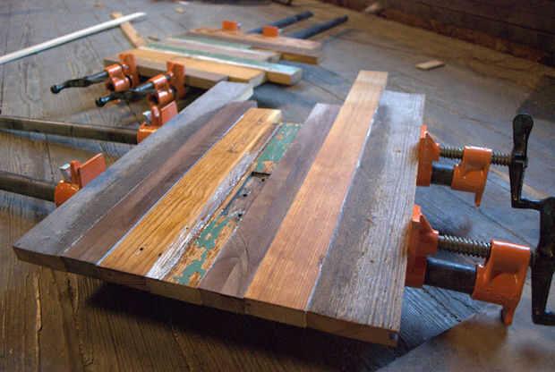 -Una vez han cuadrado todos sus bordes, ajuste seco las tablas hacia arriba al lado del otro y ver si hay lagunas o saltos en contacto, si voltea el tablero en la sierra y le dan otro paso en el borde del cuadrado