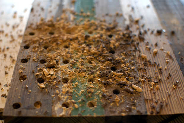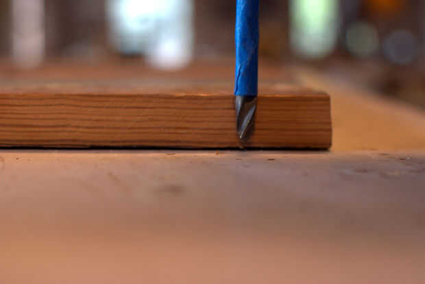 -Si no tienes una prensa del taladro, puede hacer lo que hice a continuación y utilice cinta de pintor para marcar la profundidad en la broca para evitar violar la superficie