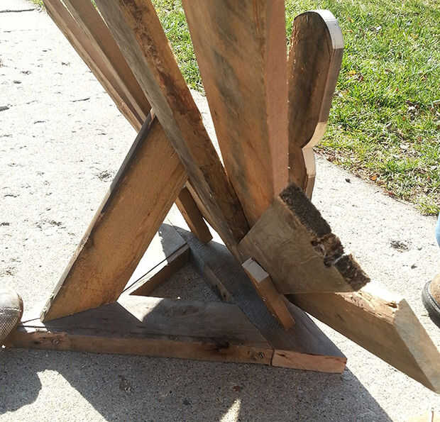 Crear un triángulo utilizando tablas de sobras para apuntalar cuerpo de Turquía. No sé qué tipo de clima la Turquía tendrá que valiente esta época del año, así que dar un fuerte apoyo a permanecer vertical.