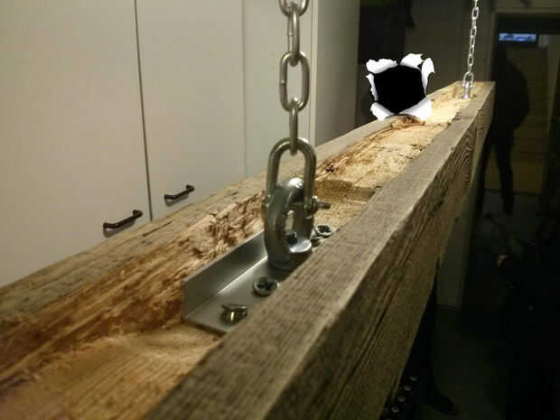 Usarlo que quieras! Probablemente un gancho roscado sería la solución más fácil. Pero tenga cuidado de no romper la woold por screewing en un tornillo/gancho grande sin una preparación adecuada.