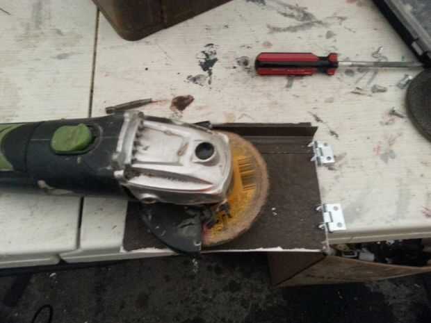 2. perforar agujeros en la caja de herramientas y de la puerta.