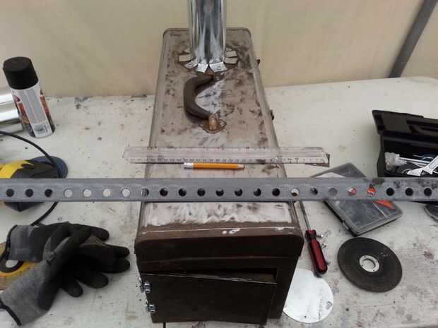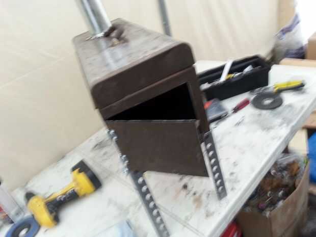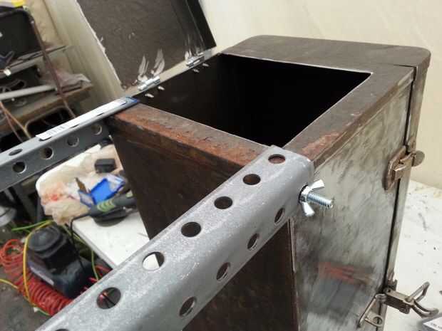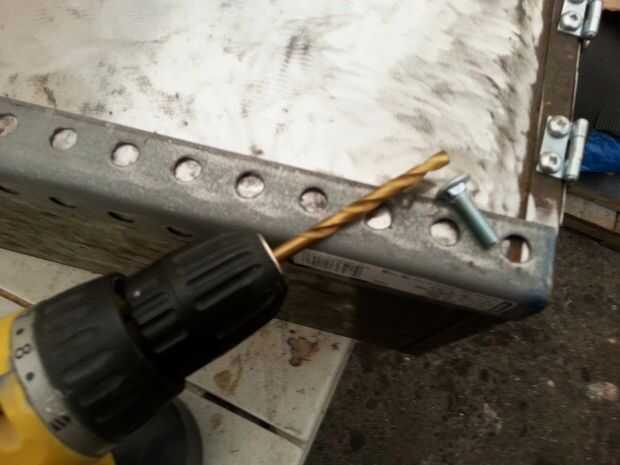 2. perforar agujeros en la parte superior de hierro de ángulo y en la caja de herramientas como se muestra.