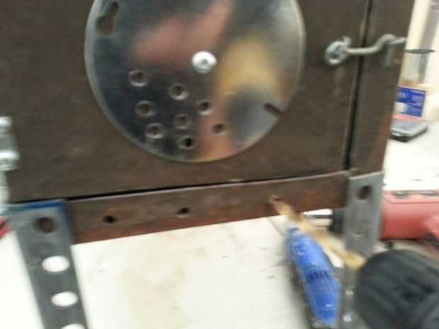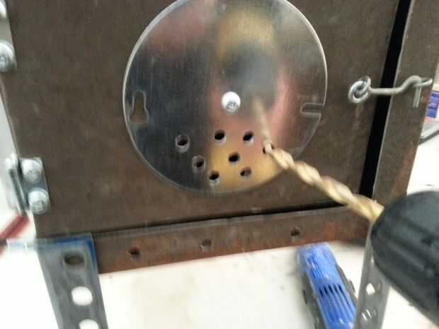 2. perforar varios agujeros a través de la cubierta y la puerta en la parte inferior de la mitad de la placa como se muestra.
