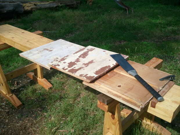 El primer material que se necesita es de madera. Estoy usando algunos pino de corazón de una cajonera vieja para este proyecto, sin embargo hará cualquier madera. La mirada recuperada es popular y la mayoría del tiempo la madera es gratis así que esto es una buena ruta a tomar. El primer paso es cortar las tablas a medida. El tamaño de la luz es 18" de altura con una forma cuadrada de 12" X 12" así que corte a la longitud de 18 pulgadas. Después de cortar a la longitud, después arrancó la Junta en 1.25" tiras y lijado de la pintura. El pino es 3/4" densamente que forma gruesa a la luz. Por lo tanto, corté las tiras por la mitad para darme dos tiras iguales que son un poco más de un cuarto pulgada de espesor. (Fig. #4) Si no tiene un método de adelgazamiento de la población o para guardar algunas medidas, entonces la mejor solución es el uso de madera ya un 1/4" densamente tales como madera contrachapada o Home Depot vende tiras de roble que han sido aserradas cuarto pulgadas de espesor.