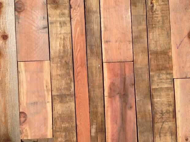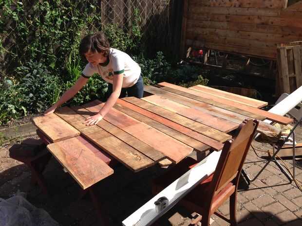 Asegúrese de que tener suficiente madera para ir a través de toda la longitud de la mesa más algunas extra. En nuestro caso la longitud de la mesa es aproximadamente de 68 pulgadas, con espacios entre cada placa de 1/8 de pulgada.