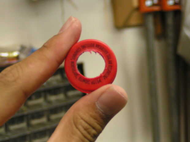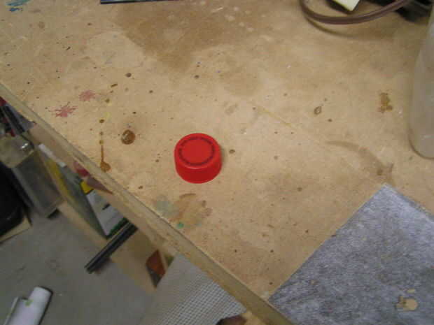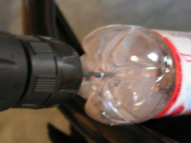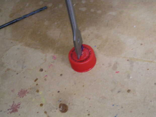 Finalmente, con la broca de 5/8, perfore un agujero en el centro de cada tapa de la botella