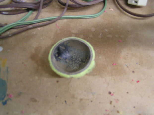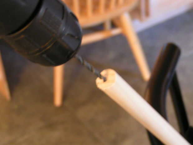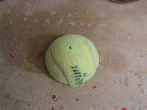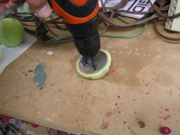 Entonces, perfore un agujero en el centro de cada bola de tenis medio.