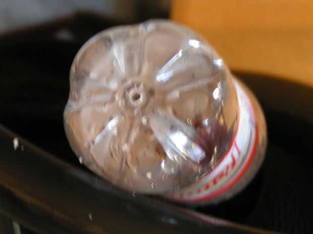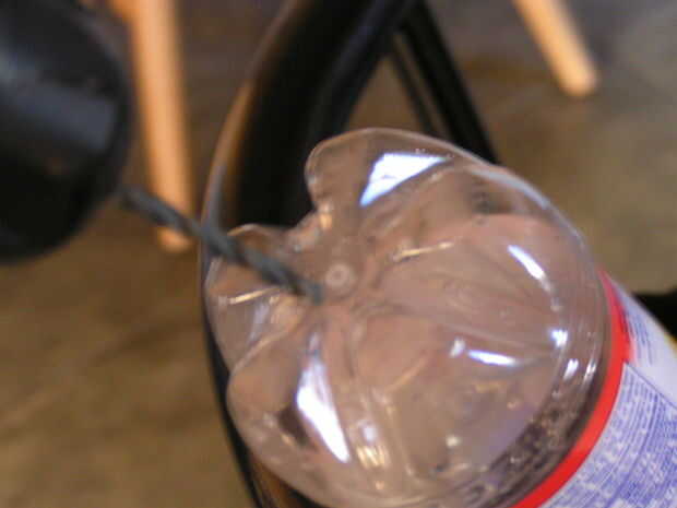 A continuación perfore un agujero en el fondo de cada botella de soda.