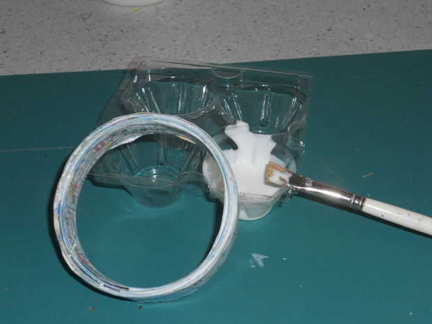 El brazalete liberalmente en medio del decoupage, asegurándose de que las asperezas en el lado de la capa de la capa. Dejar secar sobre una rejilla, y moverlo cada cierto tiempo para evitar que se pegue.