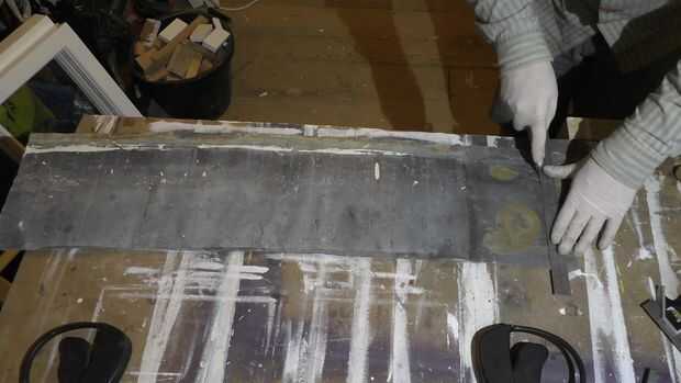 Marqué 45mm desde el extremo de la hoja, pero encontré que mi peso era un poco sobredimensionada debido a las inexactitudes por lo que recomiendo más como 40 milímetros de la marca. Ahora marcar líneas dos veces la distancia original a lo largo de la longitud de la pieza de plomo.