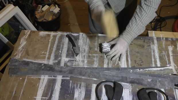 Pila el plomo tiras para arriba y usted lo conjeturaba, los martillo de planos. Encontré que conseguí mucho mejores resultados cuando martilló una pila de plomo plana en lugar de sólo de un solo espesor.