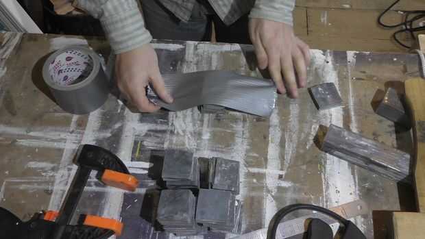 Marco de pesas tienen un orificio que atraviesa la mitad del peso. Es típicamente alrededor de 12mm pero voy hacer mía en 9mm que es suficiente para que el cable que estoy usando. Mientras que usted puede perforar los bloques como era mucho más fácil si envuelven alguna cinta primero. El problema es que es bastante pegajosa y el bloque solía venir revelada como el taladro consiguió más profundo si no grábelo.