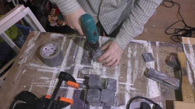 Taladré los bloques en el taladro mediante un tornillo de banco para sostener la pieza de trabajo. Mantenga un asimiento apretado del vicio como el plomo va palo a la broca. Me pareció lo mejor tomar pequeños picotazos en la punta en lugar de tratar de poder sólo a través de. En hacia arriba lado la viruta que se desprende no es agudo. Taladrar el agujero de la cuerda provoca una enorme fresa a en la cara superior pero ser plomo es fácil de quitar con cualquier cuchillo o en mi caso un avellanado.