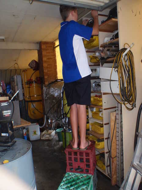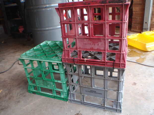 a veces es un largo camino por los estantes superiores, en su búsqueda para 20 envases de litro puede detectar algunos plástico cajas de leche. Solo agarra tres de ellos y cable atarlos juntos para una libre, ligero y útil de la escalera.
