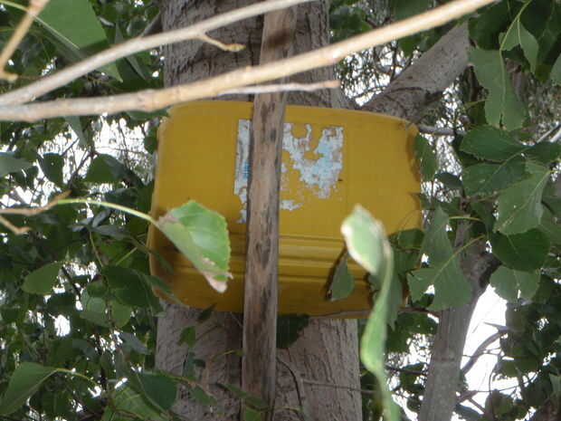 contenedores de 20 litros se pueden utilizar para otras cosas también. Yo uso uno cortado por la mitad como se muestra para coger el aceite debajo del coche cuando se hace un cambio de aceite y coloque las partes en cuando hacer las reparaciones. Clavado a un árbol con un gran agujero en la parte inferior, para atraer a las aves que anidan, pero tengo algo más enteramente