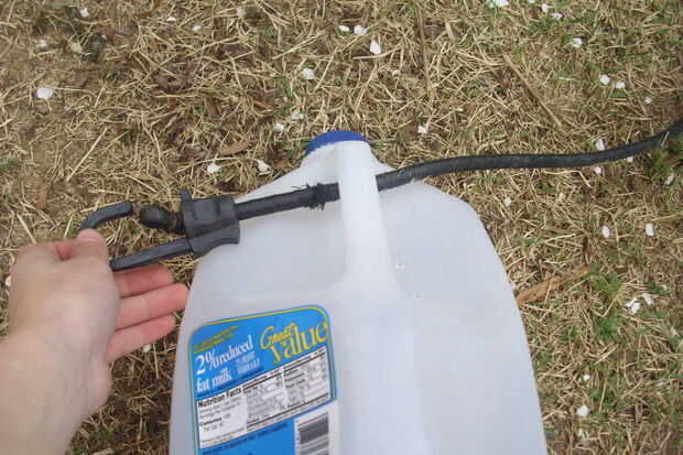 Primero tienes que poner la cuerda del amortiguador auxiliar a través de la empuñadura del contenedor de leche.