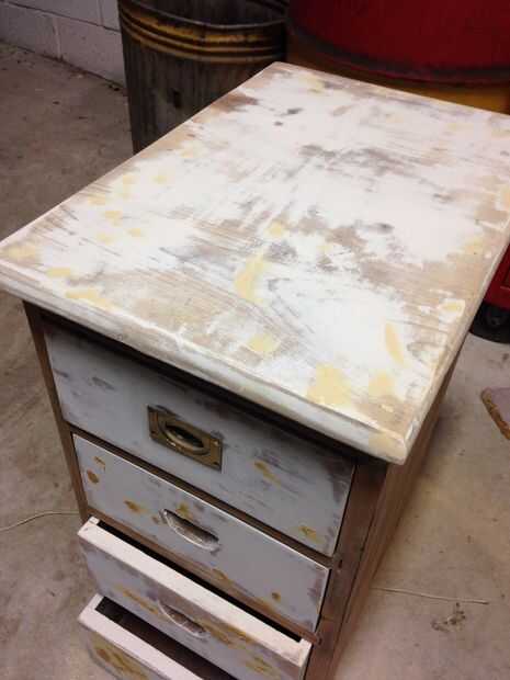 Había pintado los cajones y la parte superior de ambos gabinetes, luego lijado hacia abajo una vez más para obtener un acabado liso.