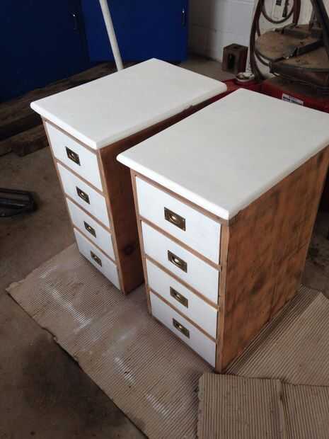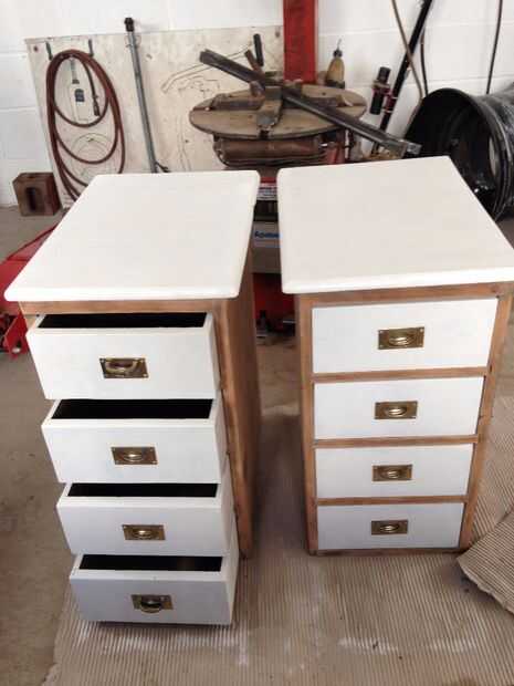 Una capa más de pintura más tarde y unos tornillos para sujetar las manijas y aquí estamos! Dos rústicos pero moderno buscando cajones, perfectos para un lado de la cama. Estoy esperando para vender a sus familiares o amigos a hacer un poco de dinero (si alguien sabe de cualquier parte que podría venderlos por un precio razonable por favor hágamelo saber!)