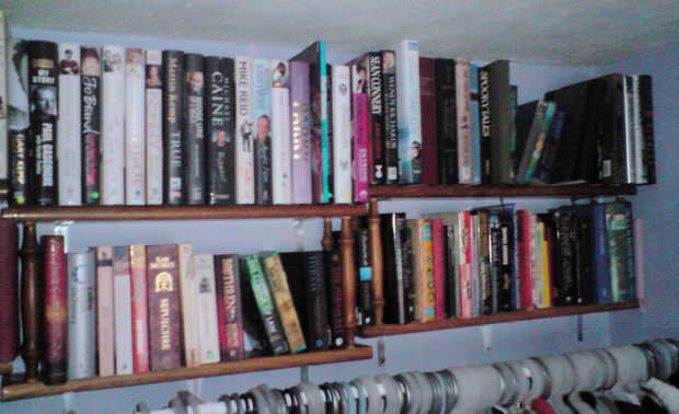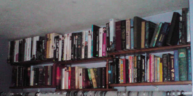 Chica nostalgia goza leyendo biografías y nuestra habitación hacía un poco desordenado con creciente montones de libros de tapa dura grandes como todos los estantes estaban ya llenos.