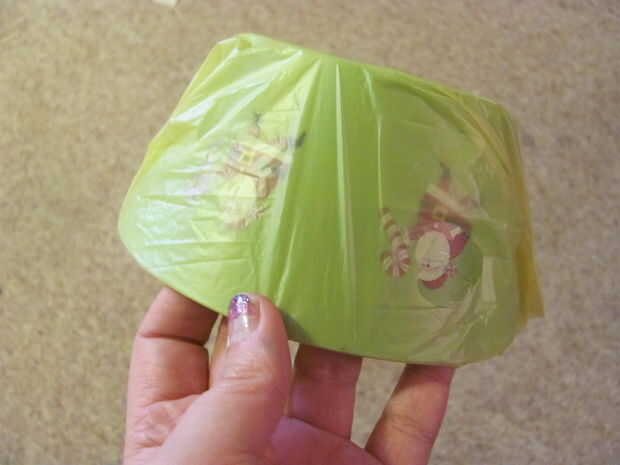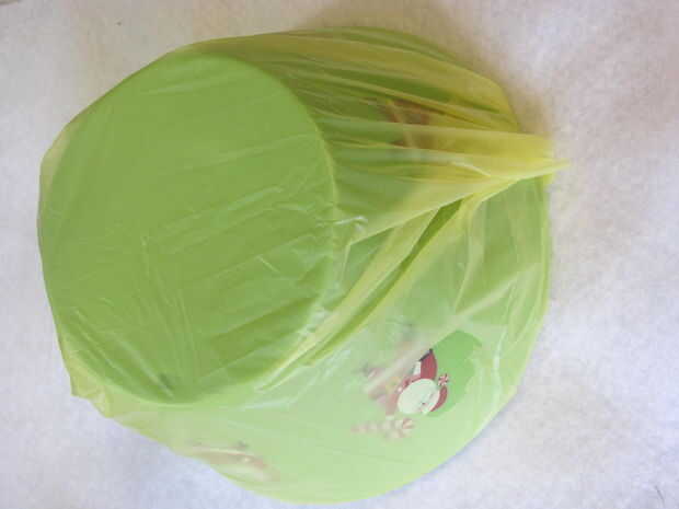 Utilizar el abrigo o supermercado la bolsa de plástico para cubrir el exterior del recipiente.  Vas a utilizar como molde para la nueva Cuba.  Usted necesita para asegurarse de que los lados más de vuelta en el interior del recipiente.  Use la cinta para sujetar el plástico.