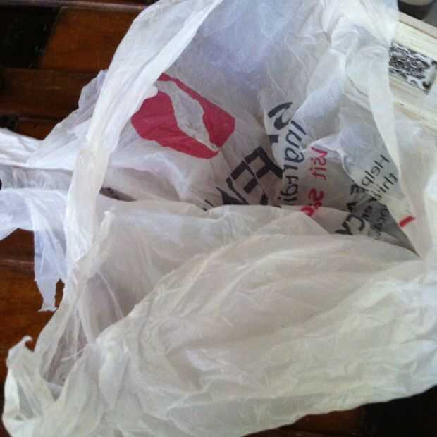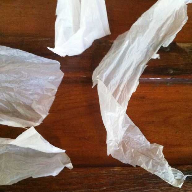 Cortar las bolsas en una tira larga y cortar por la mitad