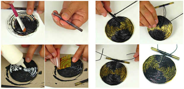 Agregar el pegamento de foil al final de la tira del tubo y en un diseño en el medallón