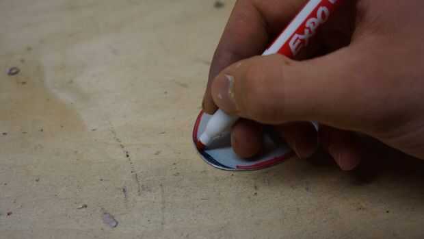 En este punto es necesario Quite las restantes líneas guía del metal. Las líneas de marcador Sharpie se levantan fácilmente usando un marcador expo. Simplemente trace sobre las marcas de rotulador con el marcador de la expo y luego límpielo mientras la tinta esté todavía mojada. Una vez hecho este proceso, lave la pieza con agua y jabón y seque con una toalla.