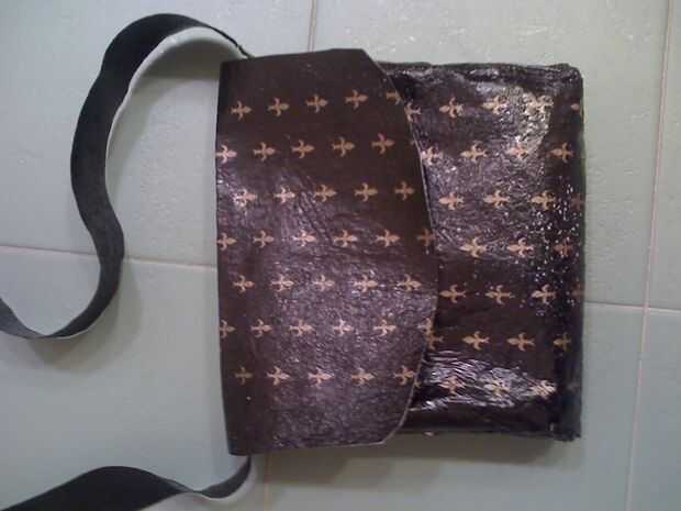 Entonces puede usar ese plástico para hacer un durable, impermeable, reciclado y con estilo bandolera o cartera.