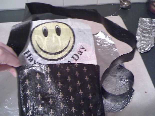 Luego fundir los extremos de la correa en las costuras de cada lado de la bolsa. Averiguar exactamente cuánto tiempo la correa tiene que ser, luego pegue la correa dentro de la bolsa y fusible a la costura lateral.