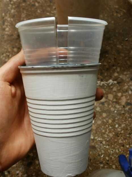 Luego ponemos el vaso translucido cortado a la mitad dentro del pintado, y lo llenamos con tierra buena, y esta listo! Pone tu semilla o tu planta y espera a empezar a ver las raices apareciendo en las paredes, cuando esto pase es tiempo de un nuevo contenedor, mejor no limitar su espacio!