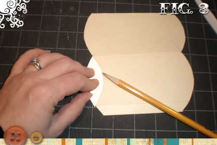 Tomar la plantilla B y alinear con una de las puntas curvas como ves en la figura 3. Con un lápiz trace ligeramente la línea de doblez. Repita este paso en los restantes tres extremos redondeados del cuerpo.