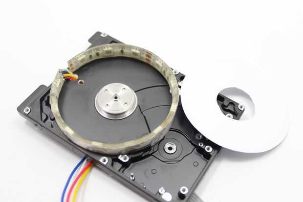 La mayoría de discos duros están acabados con un negro mate. No es un fondo propicio para nuestro LED, así que tenemos que hacer un telón de fondo más reflexivo.