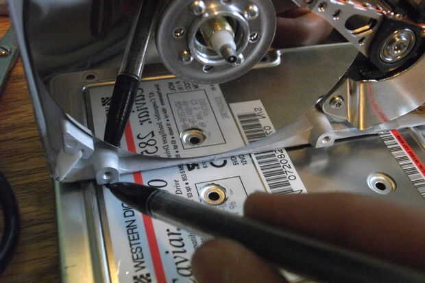 convertir un viejo disco duro de un PC de decktop en un fresco mirando el reloj del escritorio.Paso 1: Localizar un viejo disco duro.He encontrado uno con reales tornillos de fijación de la caja y la placa de circuito.Compra de un mecanismo de reloj