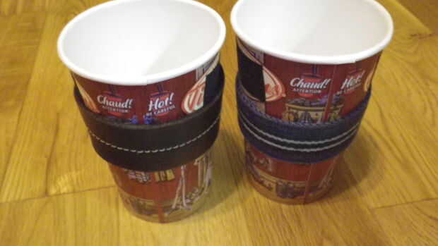 esto es una gran manera de reutilizar esas mangas de café se obtiene con bebidas calientes!Es necesario:-Mangas café-CintaPaso 1: Encontrar una funda de café... Basta una manga de café.Paso 2: Hora de cinta de conducto! Envuelva la manga en cinta. Ut