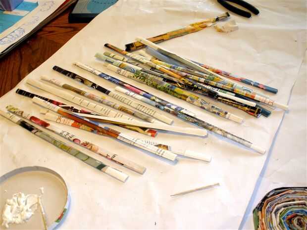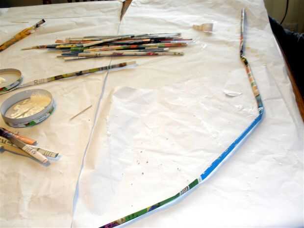 Añadimos pegamento pegajoso al azar mientras que progresó el bobinado de base. El Mod Podge que ayudan a mantener todo junto al final del proyecto.