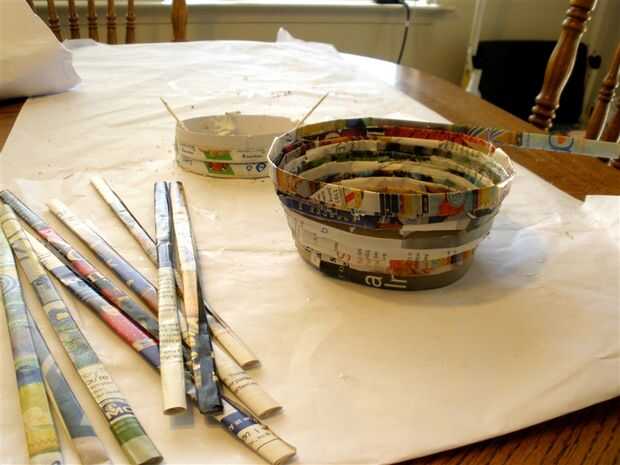 Continuar insertando tiras juntos, pegar la parte inferior de la tira a la fila anterior, (hizo este a cada sola tira) y terminando las tiras para hacer los lados del tazón de fuente.
