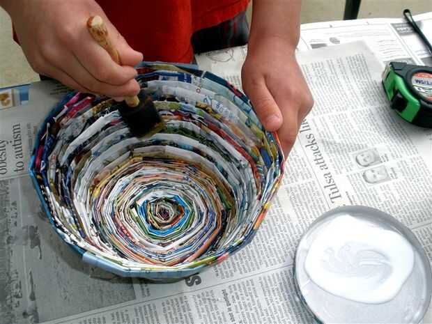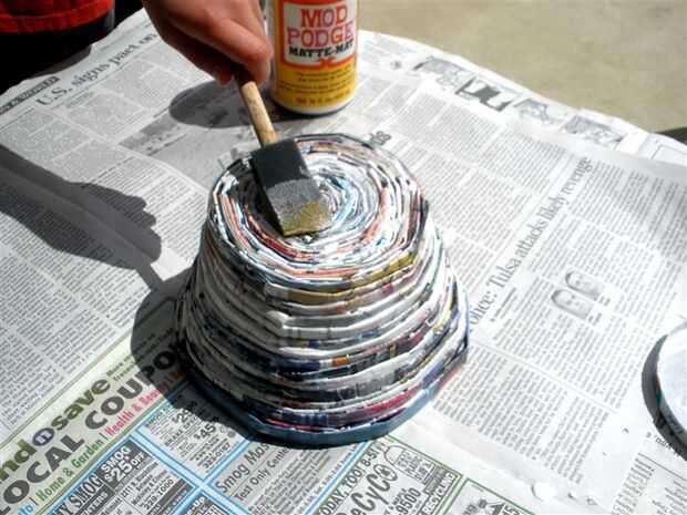Otra vez utilizando el Mod Podge, completamos el recubrimiento del interior y deje que el recipiente se seque.