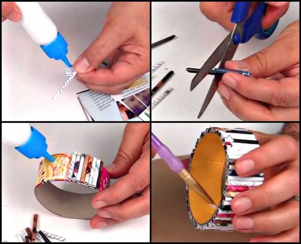 Las páginas del rodillo en tubos (a partir de la esquina) y luego fijar con pegamento