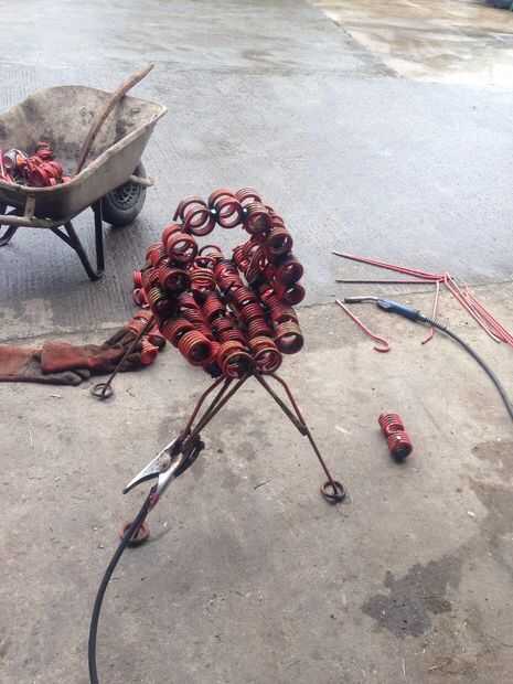 La escultura ser muy tirón, y así que era esencial que el marco de la base era sólido. Un par de 'patas' fue soldada con autógena a cada extremo de una barra gruesa, luego apoyo más pequeñas barras soldadas a éstos. Las secciones de primavera fueron después soldado con autógena alrededor de este para formar un vientre y un arco de la circunferencia del cuerpo.