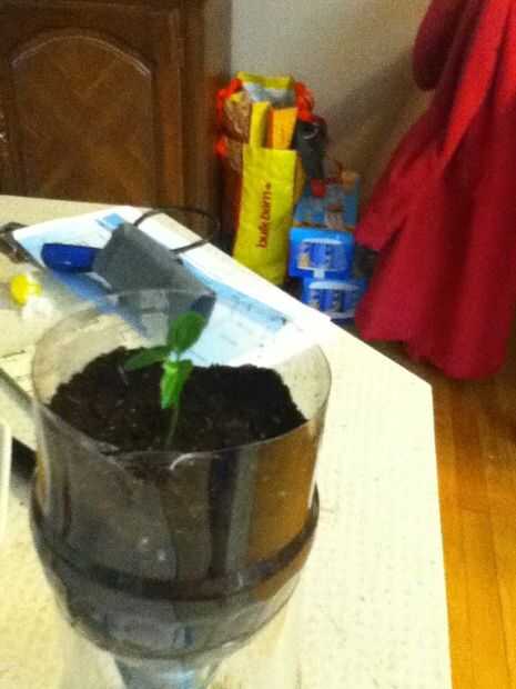 Se llenan de suciedad y su planta. La planta de la foto es una planta de vid de pasión comencé en una tienda de compra fruta
