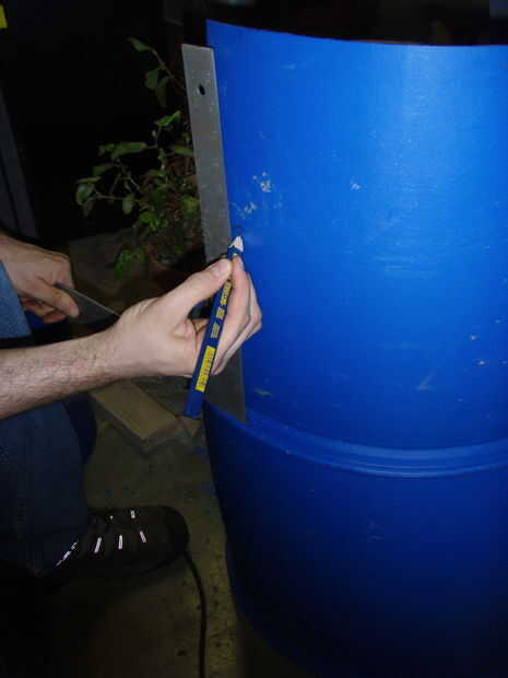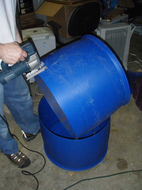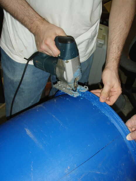 Vamos a empezar por cortar el barril a la mitad, esto es bastante simple marcar. Medir el cañón, divida por 2 entonces hacer una línea toda la manera alrededor a la altura. Aplicar liberalmente jigsaw.