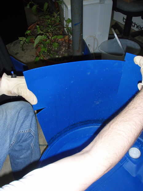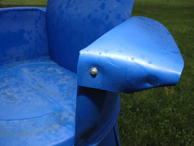 En el último paso hemos hecho varios cortes que ahora nos permitirá moldear brazos visualmente atractivos y funcionales para nuestra silla. Encontrará que el polietileno es mucho como bistec, que es más fácil trabajar con después de la correcta aplicación del fuego. OK, técnicamente se puede utilizar una pistola de calor aquí, pero usando una antorcha parece más viril y aumenta exponencialmente las posibilidades de fallas catastróficas. Lo importante aquí es para calentar el plástico hasta que quede maleable y curva y luego formar los brazos. Hay una cierta cantidad de arte a esto como la temperatura donde el plástico se convierte en "brillante" y realmente fácil de forma no es demasiado lejos de la temperatura donde estalla en llamas. Puesto que la última cosa que queremos hacer es liberación de químicos en el aire mediante la creación de una masa de la quema de plástico, este es un momento para tomar cosas agradables y fáciles. También es una buena idea utilizar equipo de seguridad adecuado (guantes, gafas, etc de la soldadura) y tener a mano un extintor de incendios.